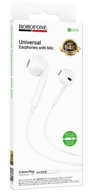 Наушники внутриканальные Borofone BM99, Star, Jack 3.5мм, 1.2 м, цвет: белый, шт