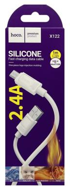 Кабель USB - микро USB HOCO X122, 1.0м, силикон, 2.4A, цвет: черный, шт